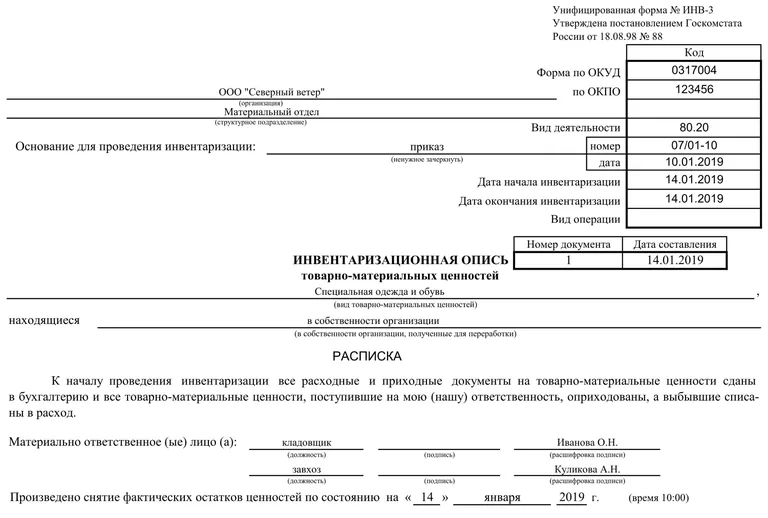 Есть несколько рекомендаций и требований к тому, как правильно заполнить опись товарно-материальных ценностей: