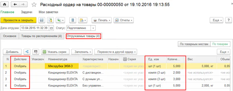 Документ «Отбор (размещение) товаров»