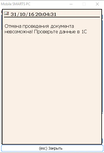 Реализован вывод сообщения на ТСД об ошибке, если документ по каким-то причинам не получается распровести в системе 1С.