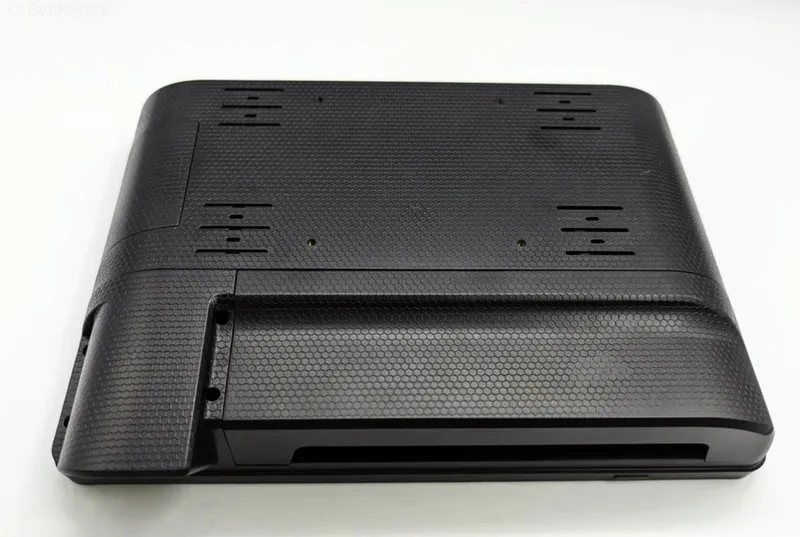 АТОЛ ИК-101AП — это очень лаконичный прайсчекер, корпус которого выполнен в черном цвете. На его лицевой стороне нет никаких кнопок, только большой 10-дюймовый сенсорный экран с качественной IPS-матрицей (угол обзора составляет 160 градусов), но на нижней грани корпуса находится клавиша питания.