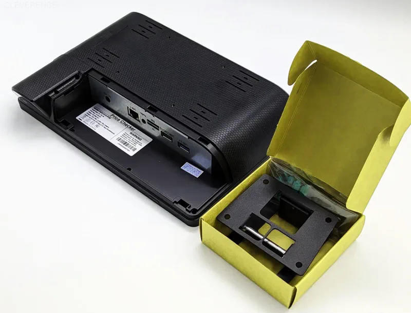 Панель с разъемами плотно закрывается крышкой, над которой находятся отверстия для крепления кронштейна (стандарт VESA 75х75) для монтажа на стену или другую плоскую поверхность.