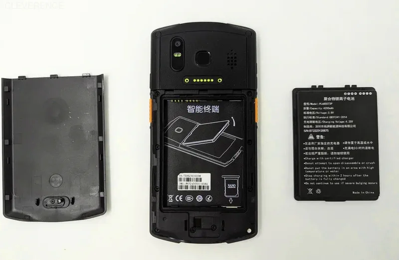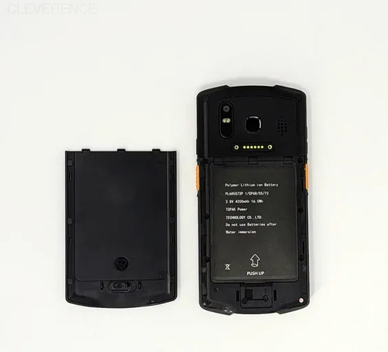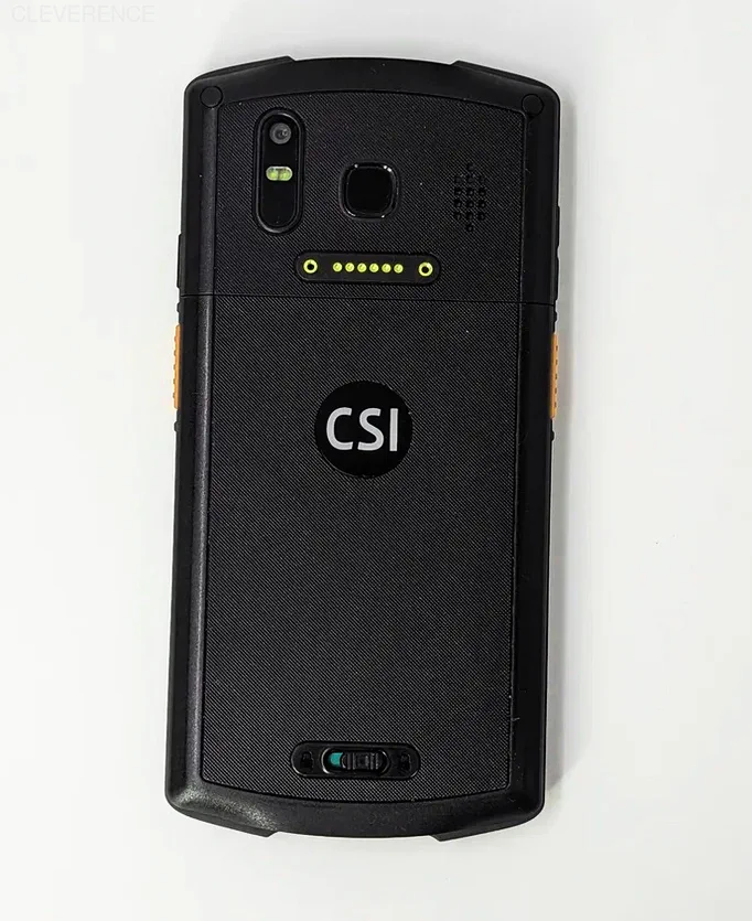 Крышка батарейного отсека у CSI Moby Touch Pro снимается несколько неочевидно — нужно разблокировать защелку и сдвинуть крышку на себя. Задняя поверхность ТСД шершавая, чтобы устройство меньше скользило в руке. В верней ее части находится окошко основной камеры устройства (13 Мп), звуковой динамик, сканер отпечатка пальца и пины для подключения пистолетной рукоятки. Быстродействие сканера отпечатка просто не поддается никакому описанию: он считывает быстрее, чем вы подносите к нему палец. Можно просто взять ТСД в руку (указательный палец сам ложится и на сканер) и разблокировать его своим отпечатком (даже не включая экран). Удобно.
