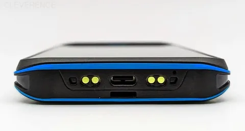 Заряжать данный ТСД можно либо от сети через USB Type-C разъем, либо с помощью крэдла (зарядные контакты внизу).