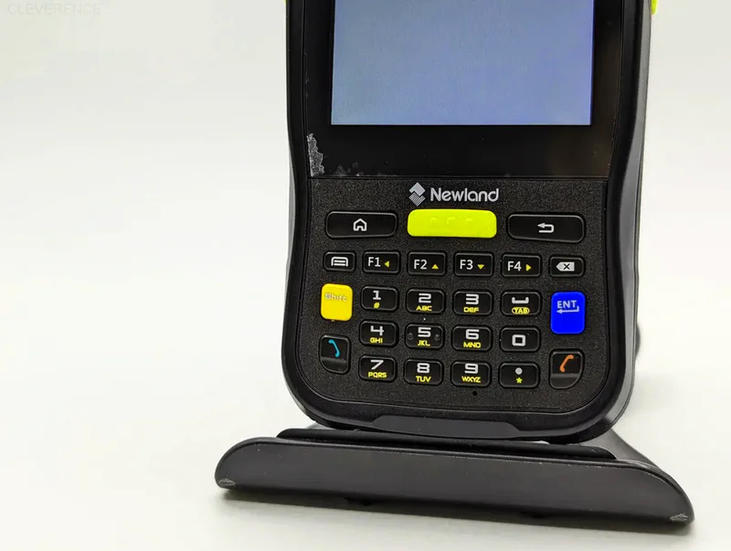 У устройств такого типа есть и сенсорный экран, и полноценная физическая клавиатура. Клавиатура состоит из 24 клавиш (с центральной кнопкой сканирования — 25). Кнопки расположены довольно кучно и имеют маленький размер, но достаточно большое расстояние между ними (по сравнению с другими моделями такой конструкции). У клавиатуры есть подсветка, что очень удобно при работе в темных помещениях.