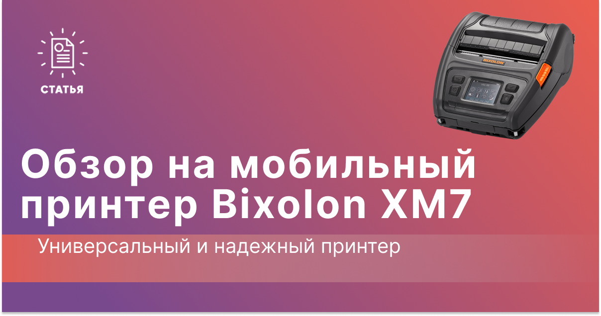 Bixolon XM7 — это серия надежных мобильных принтеров для печати этикеток и чеков, разработанная для использования в различных условиях, включая логистику, складские операции, розничную торговлю и здравоохранение. Принтеры этой серии обеспечивают высокую производительность и универсальность.