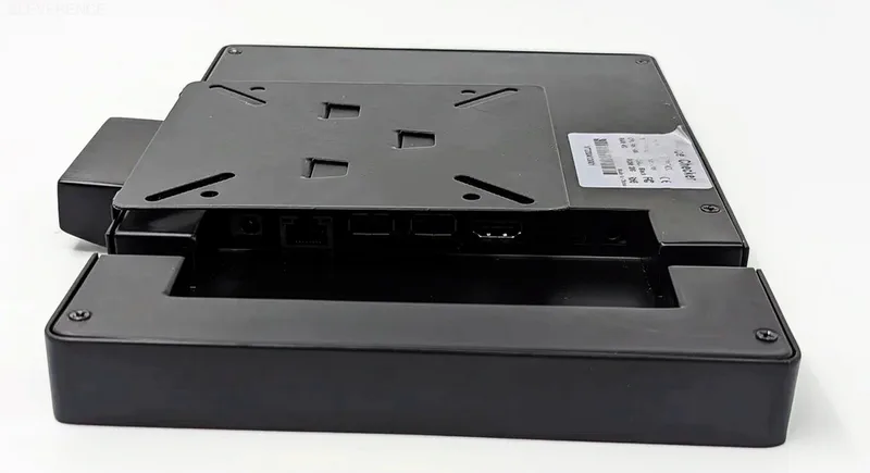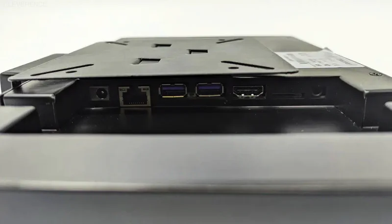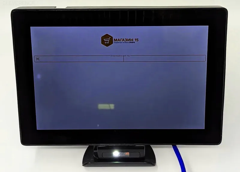 На корпусе микрокиоска нет ни одной физической кнопки, даже кнопки включения — он запускается автоматически при подключении к сети через PoE. Все управление происходит с помощью сенсорного 10-дюймового экрана. Разрешение дисплея высокое — 1280x800, что объясняется его размерами, но качество матрицы оставляет желать лучшего. Углы обзора экрана составляют 60° по горизонтали, и 45° — по вертикали.