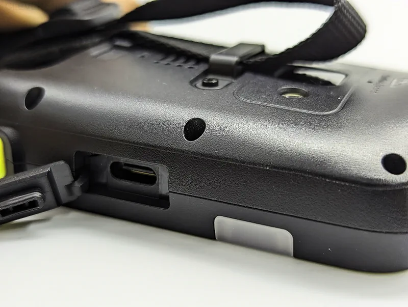 Для зарядки можно использовать либо разъем USB Type-C (закрыт заглушкой), либо пины для крэдла (находятся в нижней части ТСД). Крэдл нужно приобретать отдельно, но с ним зарядка будет быстрее, а USB-разъем — целее.