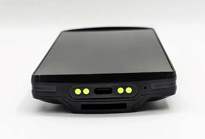Заряжать Urovo CT58 можно либо через USB-кабель (в комплекте), либо через специальную зарядную подставку (опционально). Необходимые для этого разъемы/ контакты находятся в нижней части ТСД. Зарядка через крэдл минимизирует износ USB-разъема, но требует дополнительных затрат.