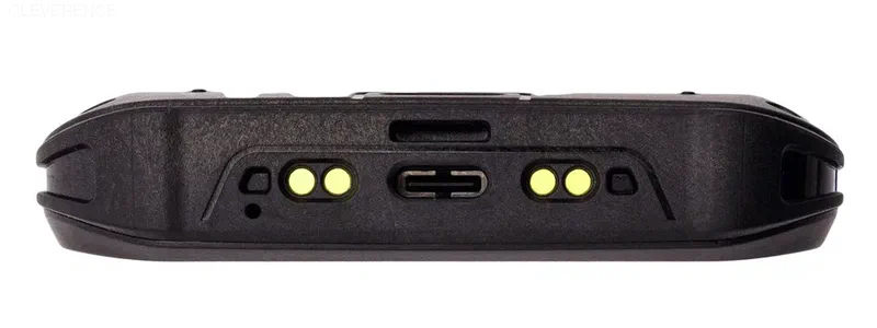 Заряжать устройство можно либо через USB-кабель (в комплекте), либо через специальную зарядную подставку (опционально). Необходимые для этого разъемы/ контакты находятся в нижней части ТСД.