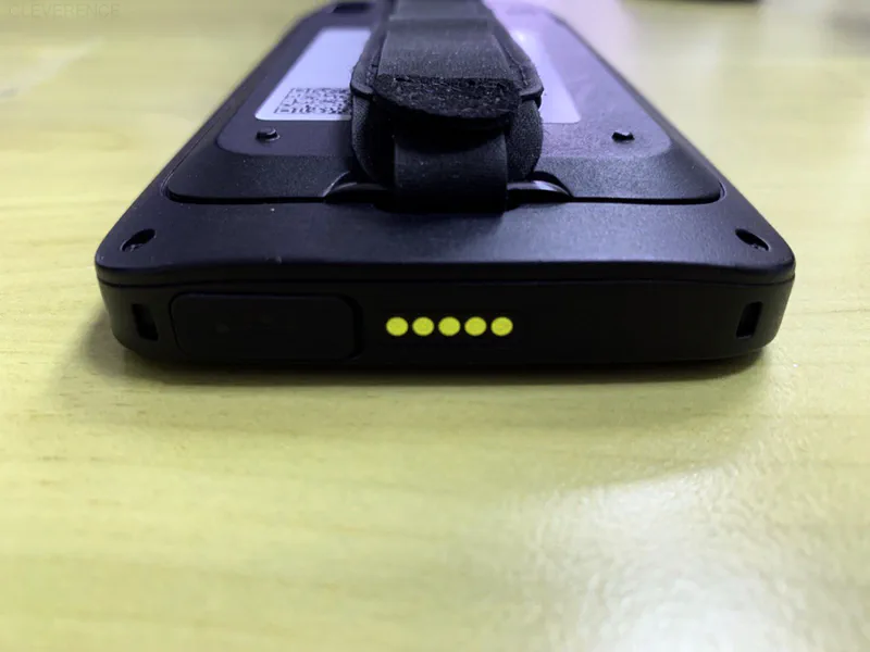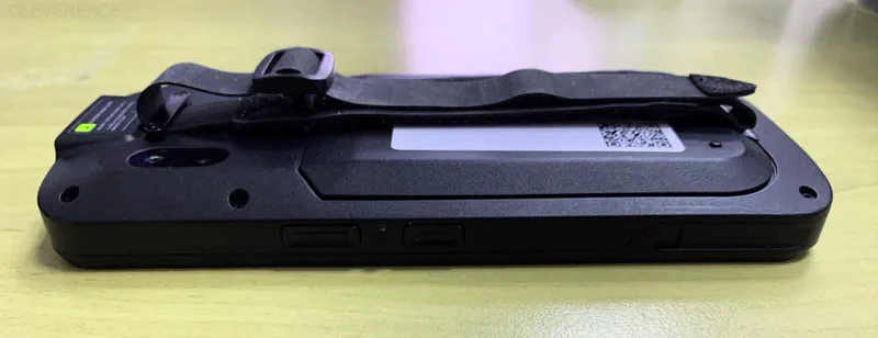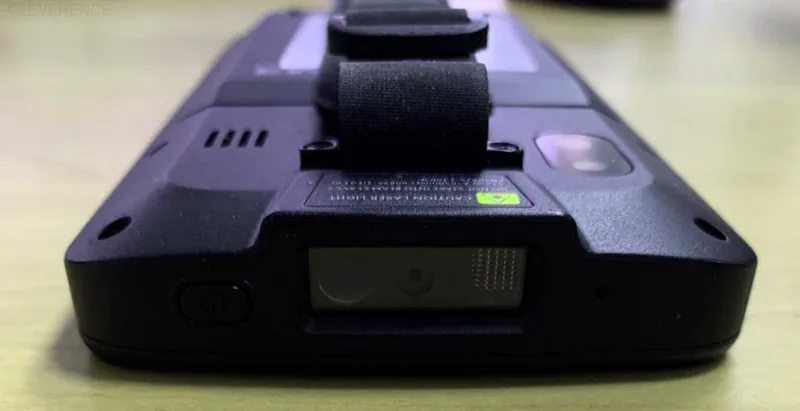На торцах устройства находятся кнопка включения/ выключения устройства, 2 кнопки сканирования и кнопка регулировки громкости. На задней панели — основная камера, динамик, разъем для крепления наладонного ремешка и контакты для подключения пистолетной рукоятки к устройству.
