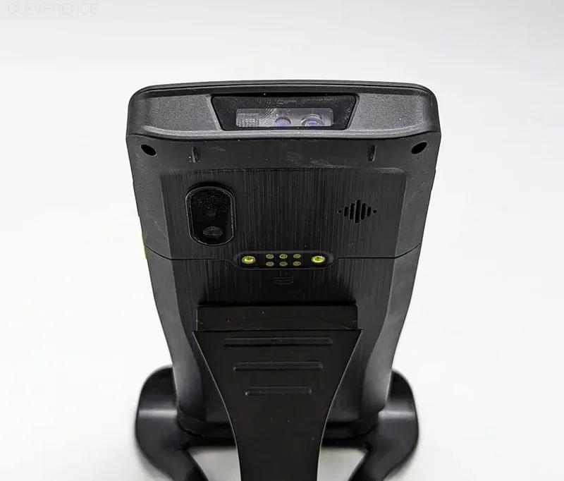 Задняя поверхность ТСД имеет текстуру, на вид схожую с текстурой дерева. На ней расположены основная камера устройства (13 Мп), динамик, контакты для подсоединения пистолетной рукоятки, крепления для наладонного ремешка и крышка батарейного отсека с защелкой.