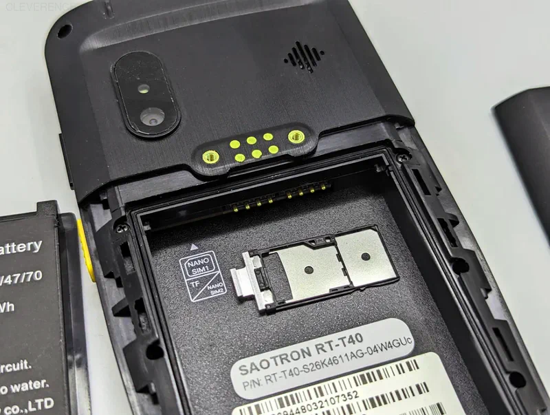 Основной источник питания ТСД Saotron RT-T40 — съемная литий-ионная батарея емкостью 4500 мАч, которая обеспечивает от 7 до 10 рабочих часов. Заряжать устройство можно через зарядные контакты Pogo Pin (нужен крэдл), либо через разъем USB Type-C.