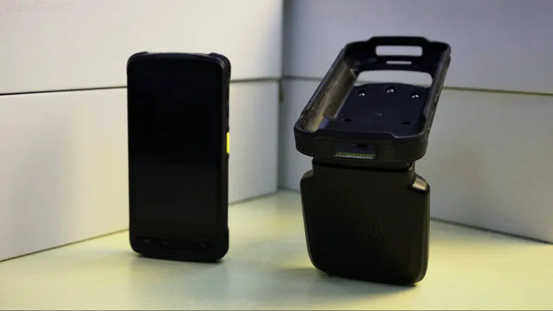 Бампер сделан таким образом, что повторяет форму терминала Newland MT90 со всеми его кнопками и отверстиями. Во внутренней части бампера находится 8-контактный разъем для стыковки с ТСД, благодаря чему сканирование ШК или радиометки может происходить по нажатию кнопки на рукоятке.