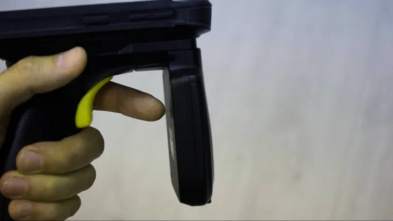 Пистолетная рукоятка и антенна прикреплены к бамперу винтами, держатся крепко, но при необходимости их можно снять (например, когда не нужно сканировать радиометки). Рукоятка удобно лежит в руке, кнопка сканирования не заедает и отрабатывает корректно.