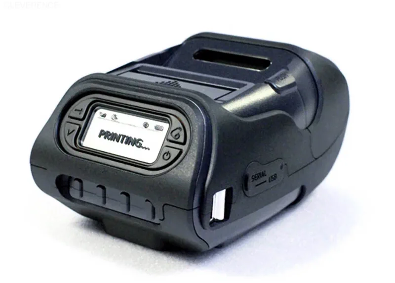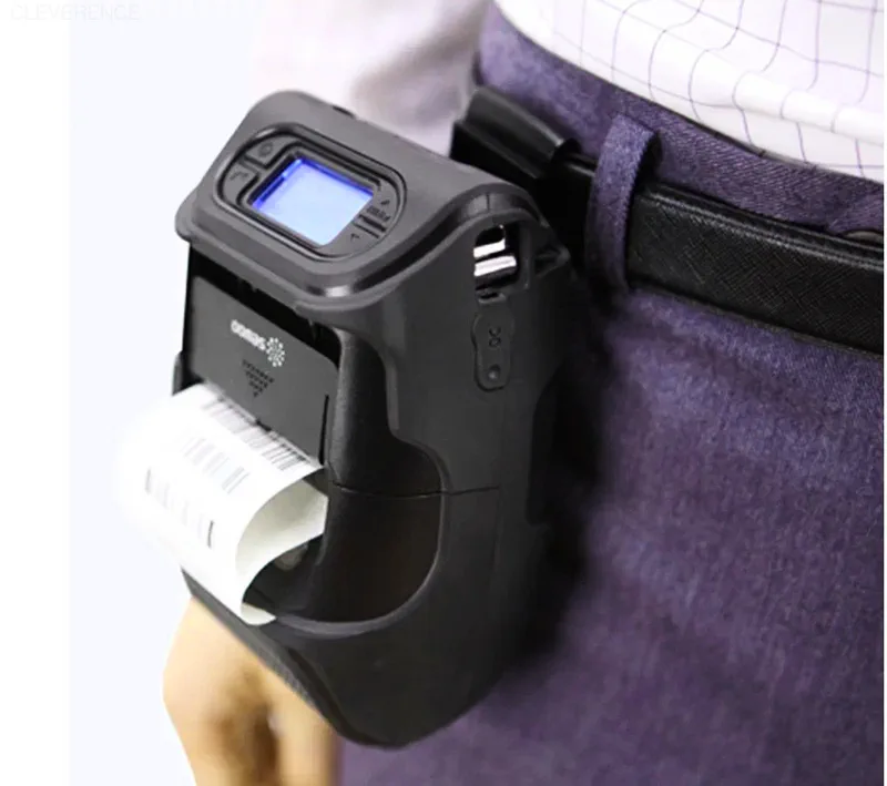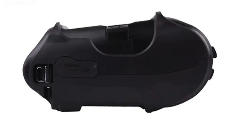 На одной боковой поверхности устройства находится закрытая заглушкой выемка с разъемами microUSB и Serial (для последовательной передачи данных). На другой — разъем для зарядки (тоже под заглушкой), контакт для присоединения клипсы (на пояс). По обеим сторонам принтера находятся кольца для крепления плечевого ремня.