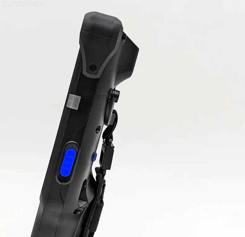 Кроме центральной кнопки сканирования у Unitech HT730 привычно присутствуют еще две боковые красивого бирюзового цвета. Кроме них, никаких кнопок на боковых поверхностях ТСД больше нет.