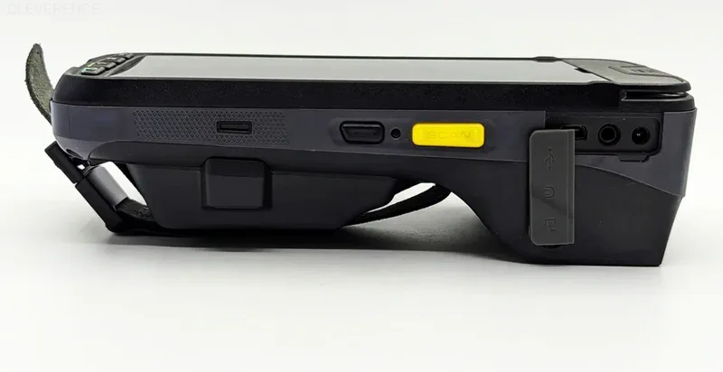 Под резиновой на боковом торце UROVO i9000S спрятаны разъемы microUSB, jack 3.5 (наушники) и питания. Еще более широкие возможности для подключения периферии у крэдла для этого устройства.