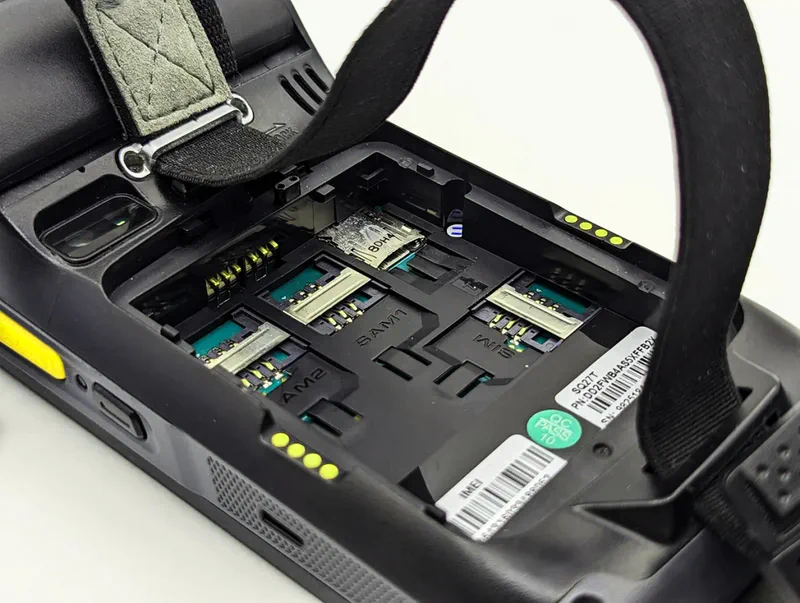 Для защиты безналичных платежей в UROVO i9000S предусмотрены два разъема под PSAM карту (под аккумуляторной батареей).