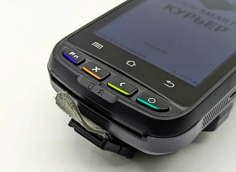 Есть 2 физические кнопки для сканирования ШК на боковом торце устройства (могут быть реализованы программно). Кроме них на торцах расположены кнопка питания, качелька громкости и программируемая клавиша. Между клавишей сканирования и питания расположена кнопка «Reset» для сброса параметров до заводских.