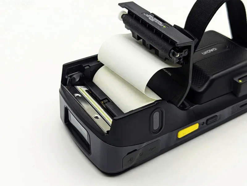 Ширина носителя, используемого в UROVO i9000S — 58 мм, ширина печати — 48 мм. Разрешение печати стандартное — 203 dpi, скорость около 50-70 мм/с. Тип носителя — чековая лента, тип печати — термо.