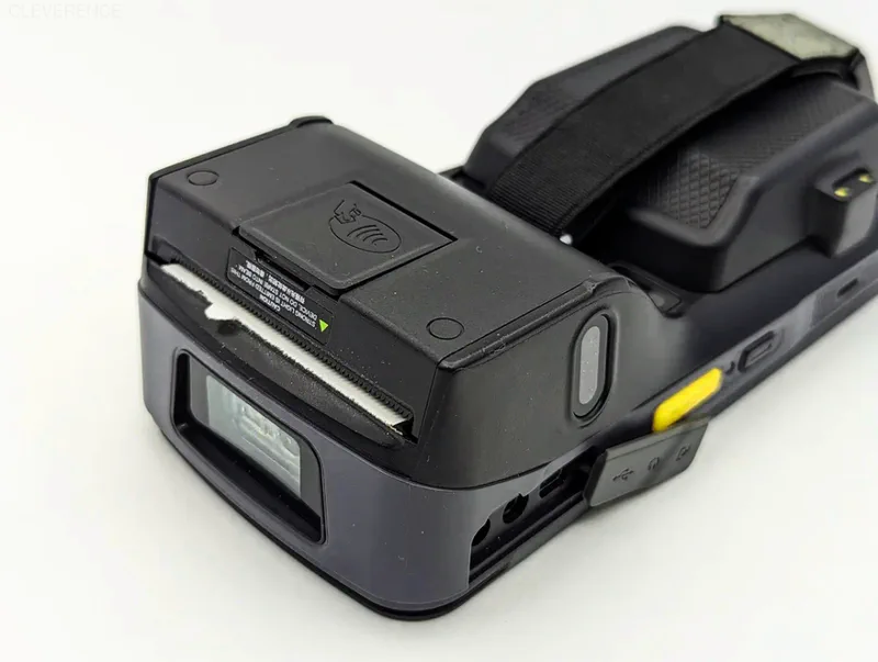 Печать чеков — вторая важная функция UROVO i9000S. Печать происходит после оплаты картой или наличными с помощью принтера, который встроен в верхнюю часть корпуса устройства. В нем предусмотрены прорезь для чековой ленты, зубчики для отрыва чека и даже окошко для контроля за расходом носителя. Крышка принтера легко открывается с помощью защелки, и замена чековой ленты не вызывает никаких сложностей. При печати чек загибается наверх.