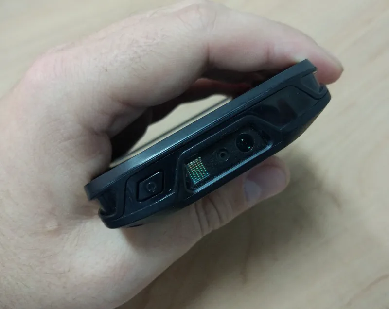 На верхней лицевой части разговорный динамик. И необычное решение — основной динамик тоже вынесен на лицевую часть, а не на заднюю стенку, как все привыкли. И мне это решение понравилось, звук громкий и направлен на пользователя, слышно уведомления даже в шумном помещении. Когда в приложение «Mobile SMARTS Магазин 15» на ТСД приходит заказ, пропустить уведомление об этом невозможно.