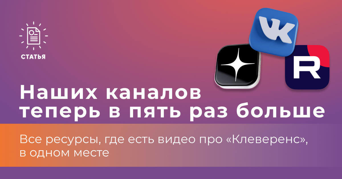 Решили собрать для наших подписчиков ссылки на все ресурсы, где есть видео про «Клеверенс», в одном месте. Просто выбирайте удобный для вас канал и подписывайтесь, чтобы не пропустить новый контент.