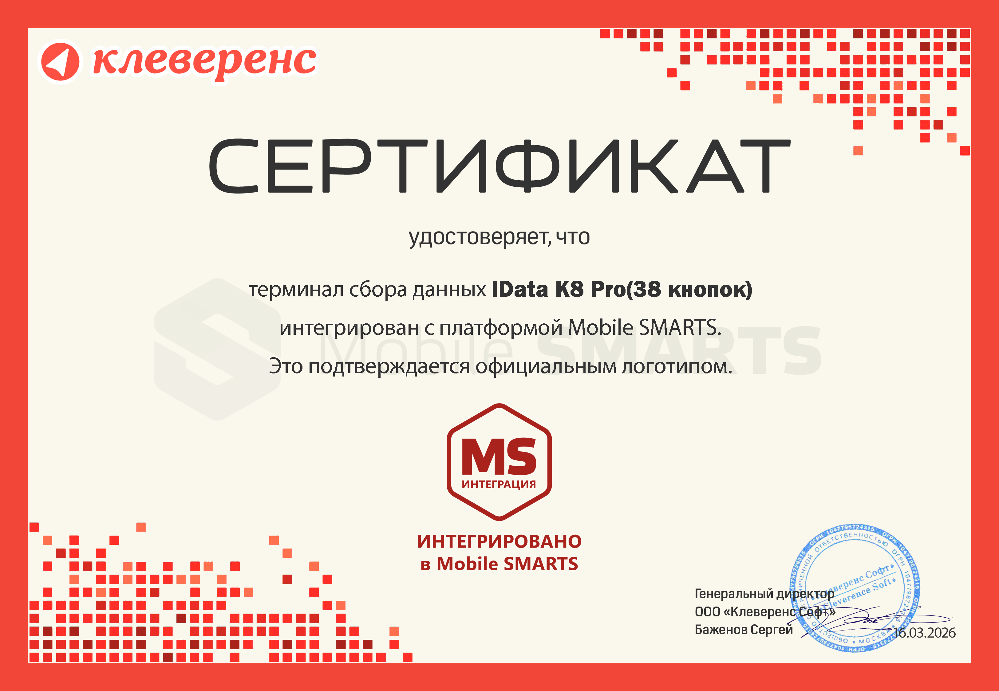 Интегрирован ТСД IData K8Pro (38 кнопок)